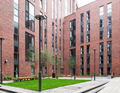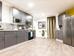 公寓提供完善的生活、社交与学习设施。每间房均为独立卫浴 en-suite,厨房通常以四至五人共享形式配置,有冰箱、冰柜、烤箱、炉灶、微波炉和储物柜等基础设备。楼内设有健身房、学习室、静音自习区、电视室、游戏室和公共休息区,适合在校园之外继续学习或放松。公寓前台与安保团队提供 24 小时管理与 CCTV 监控,维修团队常驻,确保处理问题及时。另有洗衣房、自行车存放区和高速 Wi-Fi,全方位支持学生的日常需求。