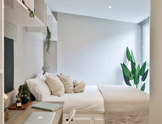 房型以 studio 与 ensuite 为主,也有少量 apartment 户型,满足不同预算与隐私需求。所有房间均配备独立卫浴,家具齐全,包含书桌、储物柜、大床等。Studio 配备独立厨房,ensuite 共享厨房。厨房电器齐全,包含冰箱、微波炉、烤箱等。