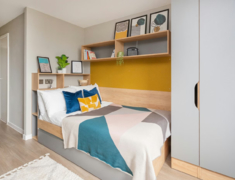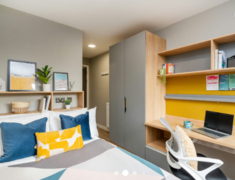 房间内部:涵盖 12 人联排卧室(共享卫浴)、套房(独立卫浴 + 共享厨卫)、独立 studio(自带厨卫起居区),均配小双人床、衣柜、书桌椅,studio 含床底储物,暖气齐全。公寓设施:设室内外社交空间、游戏区、室内自行车存放处、洗衣房,24 小时驻场支持贴心护航,高速 Wi-Fi、财产保险及水电暖全包,支持双人入住。