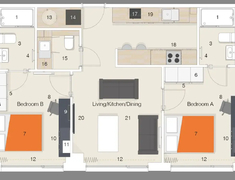 • 多人间卧室两人共享,卫浴独立或共享,客厅厨房共享。