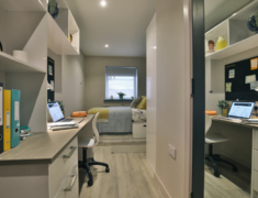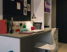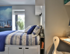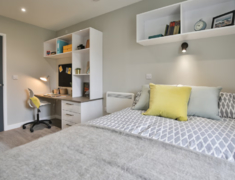 房间内部:公寓提供ensuit和studio两种房型,每个房间都配有双人床、独立卫浴、桌椅等,厨房配有炉灶、烤箱、微波炉、冰箱等。