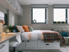 George Street Apartments步行15分钟直达格拉斯哥三大名校,Studio房型配备独立厨房。24小时安保+全包账单,健身房自习室齐全,博物馆就在家门口,留学生活安心又便利。