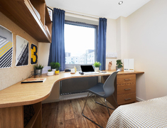 房型分为ensuite和studio两种,均有私人独立卫浴,公寓配备单人床、书桌、衣柜及储物架,部分房型可俯瞰校园景观。