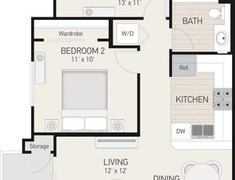 网络与生活基础设施:提供谷歌光纤(Google Fiber)与 Cox Gigablast℠超高速网络服务,满足住户对高速网络的需求;室内统一配备洗衣机 / 烘干机(In-Home Washer/Dryer)、冰箱(Ref.)、洗碗机(DW)等家电,部分户型还设有储藏室(Storage)与食品储藏柜(Pantry),生活便捷度拉满。