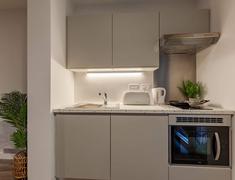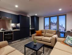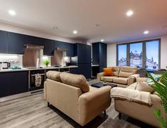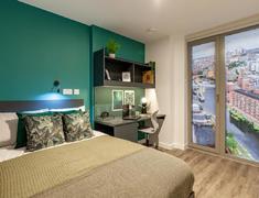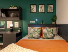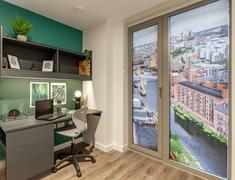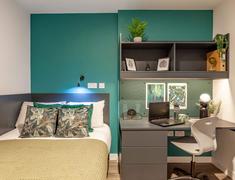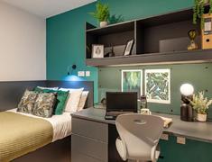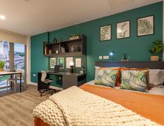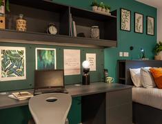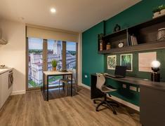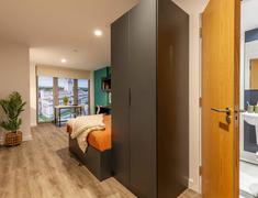 提供En-suite(4-8人共享厨房)与Studio两种房型,配备舒适大床、独立书桌、私人卫浴及定制衣柜。部分房型配备无障碍设施,全景窗户保障充足采光。