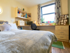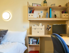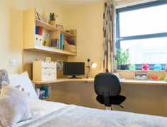 公寓提供 Ensuite房型。ensuite 房型独立卫浴、共用厨房,一般是4-6人间,是喜欢社交的学生的最佳选择。 房间配有双人床、书桌椅、衣柜、书柜、穿衣镜等,有充足的储物空间。公共厨房配有灶台、冰箱、烤箱,沙发、茶几等。