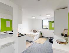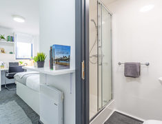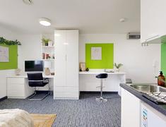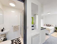 房间内部:提供ensuite和studio房型,房间淡雅简约,自带厨房+卫浴,动线合理,周边生活交通便利。
