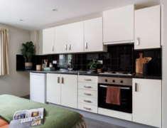 Studio(独立套房)适合偏爱安静、需完全私人空间的同学,为 “起居 + 睡眠 + 独立厨卫” 一体化布局,配舒适单人床、衣柜、书桌,独立卫浴带淋浴等设施,单人厨房设备齐全且有小餐桌,还配齐全套家具、可开窗通风、暖气充足;Ensuite(独立卫浴合租间)适合爱热闹、想交友的同学,是 “独立卫浴 + 共享厨房客厅” 布局,独立卧室有床、书桌和衣柜保障隐私,独立卫浴配置同 Studio,与几位室友共享厨房(带分区大冰箱等)和客厅(有沙发)。
