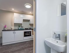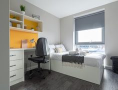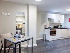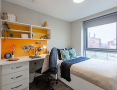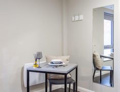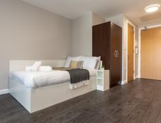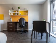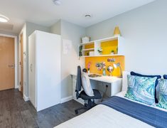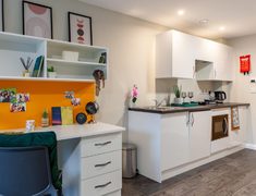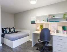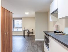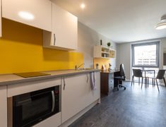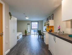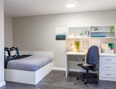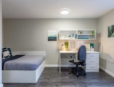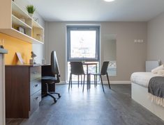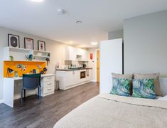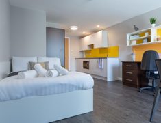 公寓提供Ensuite和Studio 房型。ensuite 房型独立卫浴、共用厨房,该公寓多为6人间,是喜欢社交的学生的最佳选择;Studio房型独立卫浴、独立厨房,为学生提供更私密和自在的个人空间。 房间配有双人床、书桌椅、衣柜、穿衣镜等,有充足的储物空间。厨房配有灶台、冰箱、烤箱等。