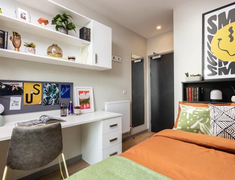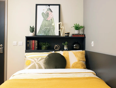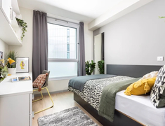 - En-suite(面积12-15平)、Studio(面积17-22平)、 Non En-suite(面积11-13平)房型,保障隐私与舒适。房间空间规划合理,储物空间充足,窗户可自由开启,搭配充足暖气供应,冬日暖意融融;公共区域(如厨房、自习室)配备空调,夏日清凉惬意。