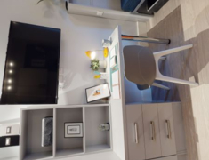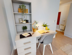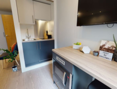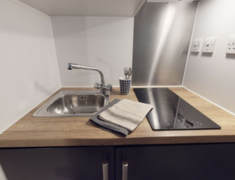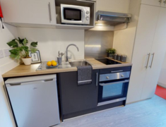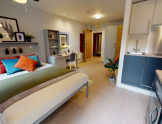 Studio独立厨房独立卫浴,提供全套的现代化厨房、卫浴和书桌,住房面积按楼层为15-24平方米不等,均提供双人床