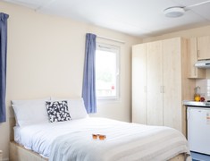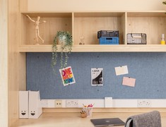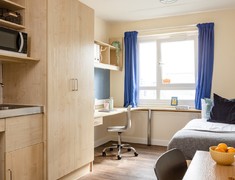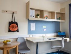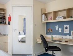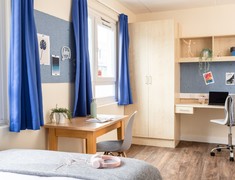房间内床品、书桌等家具一应俱全,独立卫浴干净便捷,阳光充足视野好,学习休息互不干扰,细节处藏着贴心。