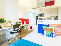 公寓邻近静谧河畔,清晨或傍晚散步散心超惬意,安静氛围特别适合专注学习。步行可达商业中心,餐厅、商店一应俱全,购物聚餐轻松搞定。