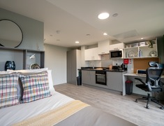 提供不同类型的Studio房型,房间内设施齐全,包含小双人床、书桌、冰箱、微波炉、炉灶等。房租包含Bill,没有额外费用。住户可以免费使用公共餐厅,可以举办派对,和朋友享受美食;公共休息室是一个完美的社交中心,舒适而温馨,供住户和同学会面、放松身心。