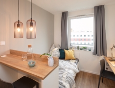 公寓配套设施完善且实用,24 小时监控系统全方位保障居住安全。专属自习室安静整洁,是专注学习的理想空间;健身房配备基础健身器材,方便日常锻炼;游戏室(含台球桌)与电影放映室为休闲时光增添乐趣。同时提供自行车存放处、包裹接收服务与洗衣房,满足日常需求。免费借用的吸尘器、熨斗、晾衣架等家居用品,让居住更省心,不定期组织的小型社群活动,也为留学生搭建了社交平台。