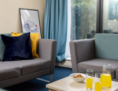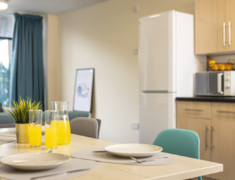 免费的高速Wi-Fi覆盖所有房间和公共区域。所缴纳的租金包括了水费,电费和宽带费用等。公共区域如厨房和客厅由保洁人员免费打扫。有洗衣机和自助售货机, 公寓提供自行车存放区和停车场,公共区域是社交,学习的极佳场所。 厨房内的设备包括冰箱,微波炉等。房间内配有一张舒适的床,一张书桌,一把椅子,衣柜和书架等。你可以根据自己的喜好装饰房间,让它更有家的感觉。浴室内有淋浴设备,洗手池,镜子,坐便器,毛巾架等。