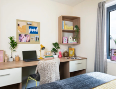 房间内部:涵盖 Classic Ensuite(4-6 人间)、Classic Studio、Premium Studio 三种房型,Ensuite 约 13㎡(独立卫浴 + 共享厨房),Studio 面积 16-18㎡(独立厨卫);均配 122×190cm 小双人床、超大书桌、定制衣柜 + 床底储物,厨房含烤箱 / 微波炉 / 冰箱,全屋高速 wifi + 暖气充足,隔音效果出色~​