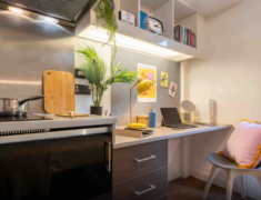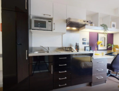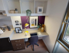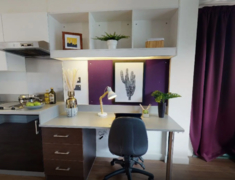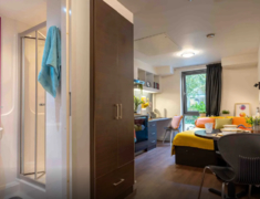 房间内部:有studio房型及ensuite房型,既可以与朋友一起住也可以享受独居生活,Ensuite,带独立卫浴的单间,厨房和其他同学共享; Studio,独立卫浴,独立厨房的套房。
