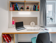 房间内配备大尺寸窗户(可开启)、暖气与独立书桌椅,单人间约 13–17 ㎡,多人套房含独立卫浴和共用厨房。公寓设有公共洗衣房,配备洗衣机和烘干机,使用方便且费用合理。