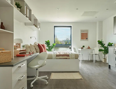 公寓2023年全新修建,配备自行车室、高速网络与24小时安保,提供丰富社交空间,兼顾学习与生活品质;步行3分钟可达普利茅斯大学。