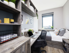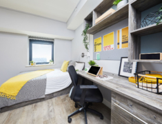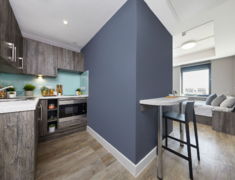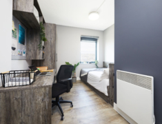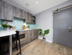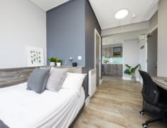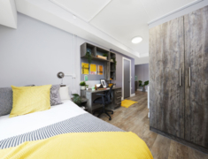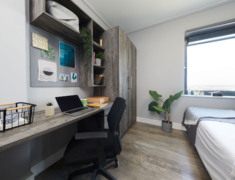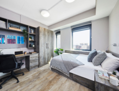 2022 年完成全面翻新,核心优势是 “近校新设施 + 高适配”,房型含 ensuite(2-4 人间)与 studio,满足独自或结伴居住需求,配置贴合留学生日常习惯。