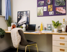 生活必备设施:可容纳218名学生的大型学生社区,提供En-suite(独立卫浴共享厨房房型),4-6人间,配备私人独立卫浴,平衡 “轻社交” 与个人隐私,居住舒适度更高。房租已包含暖气、水费、电费,无需额外分摊;公寓内(含房间及公共区域)全覆盖 Wi-Fi,且提供超高速宽带,满足线上学习、娱乐需求。提供自行车存放处、自助洗衣房及垃圾分类回收点,解决日常居住基础需求。配备 24 小时监控(CCTV)、24 小时协助服务及驻场服务团队;采用门禁安全准入系统与消防系统,同时为住户提供财物保险,居住安全性十足。