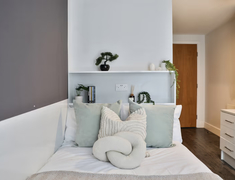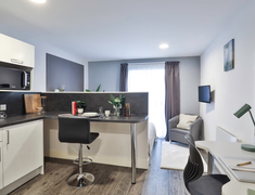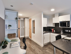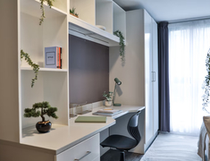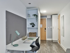房型为ensuite和studio。ensuite房型为2-4人间,配备独立卫浴和固定家具;studio含小厨房(微波炉、小灶台、迷你冰箱等)适合追求基础隐私的学生。部分高端房型配备双层隔音玻璃,降低城市噪音干扰。