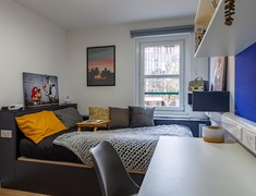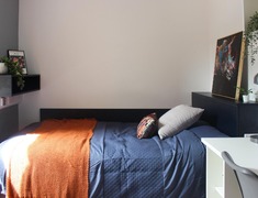 可以选择共用卫浴的房间或带私人卫浴的房间。两种房型都配有一张带储物空间的床、一张桌子和椅子、一个水槽、衣柜和抽屉柜。每间卧室都可以使用高速互联网,以确保您可以在自己舒适的家中完成学习或上网冲浪。