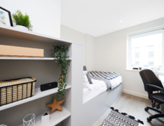 房型分为ensuite和studio两种,ensuite为4-6人间,多种租期可供选择。房间配置书桌椅和储物空间,studio房间还有个人冰箱和私人厨房区,满足不同租客的需求。