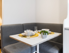 房型只有studio,面积19-26平方。studio房间配置双人床、两张书桌、两个衣柜、私人小厨房和浴室,部分房间还支持免费双人入住。